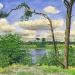 28 x 37 cm, © 2021, verkochtTweedimensionaal | Schilderkunst | Aquarel Het dorp Warffum in Groningen met de spoorlijn op de voorgrond.